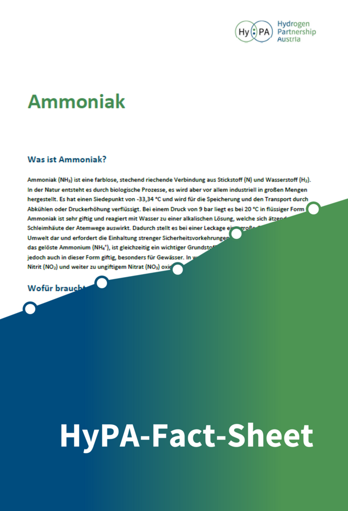 Das HyPA-Factsheet beschreibt die technischen Grundlagen der Ammoniakproduktion, die Besonderheiten des Haber-Bosch-Verfahrens, die Herausforderungen bei der Herstellung von erneuerbarem Ammoniak und die potenzielle Bedeutung von Ammoniak für internationale Wasserstoffimporte. Darüber hinaus werden Fragen der Wirtschaftlichkeit, der Transportinfrastruktur und der Sicherheitsanforderungen behandelt.
